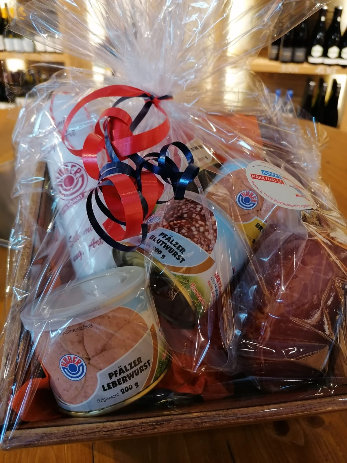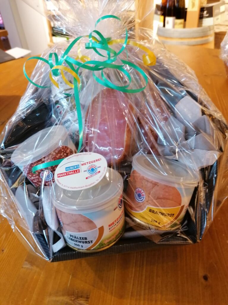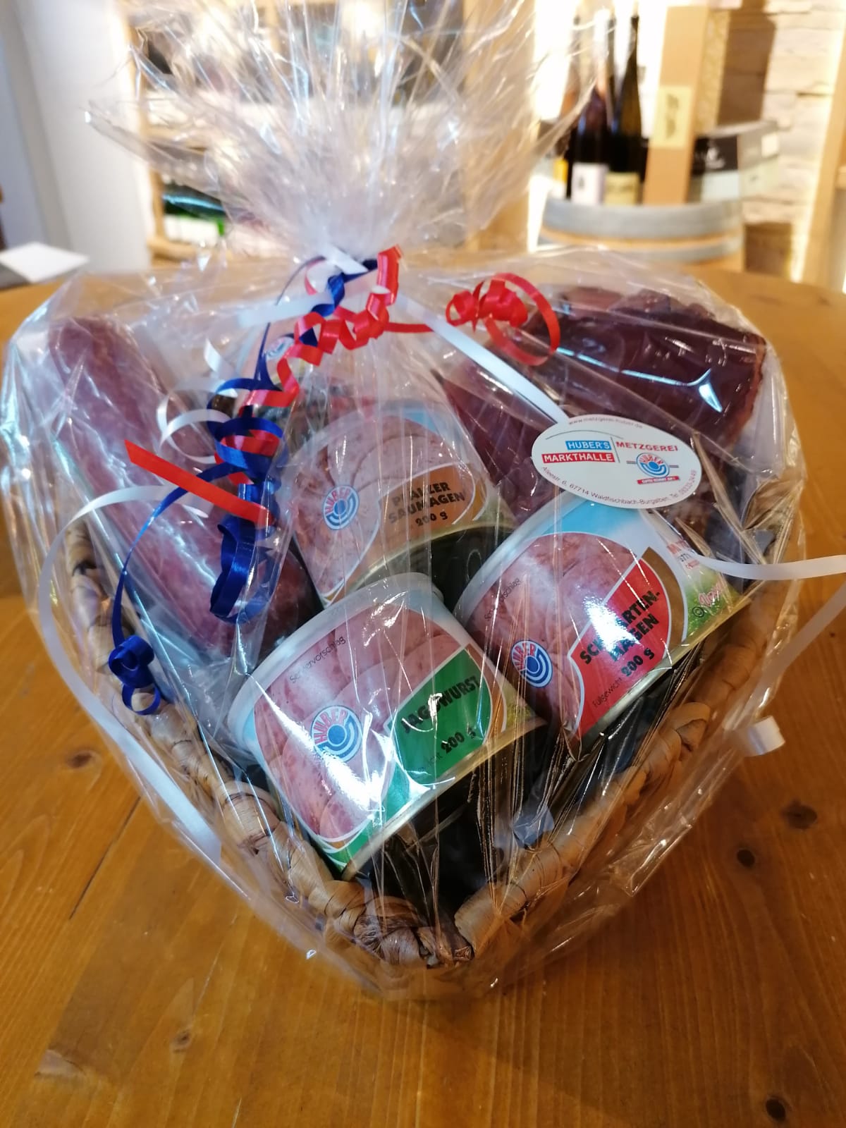 Jeder Korb wird Ihren Wünschen entsprechend individuell bestückt und so genau auf den Empfänger und Anlass abgestimmt. In unserem Sortiment finden Sie stets eine feine Auswahl an Weinen, Delikatessen und Wurstwaren, die wir für Sie gerne zusammenstellen.